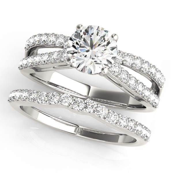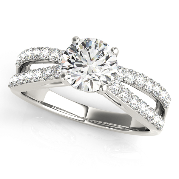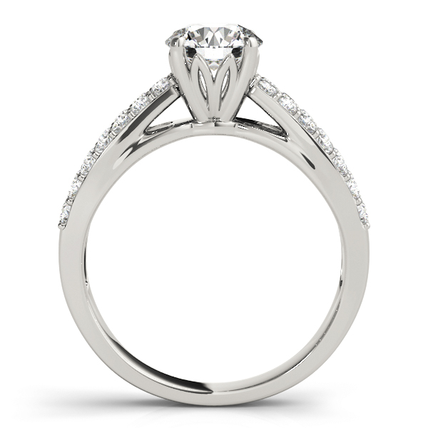 14k White Gold Engagement Ring with 1 – 1.PT Round & 28 – .015PT Round Stones, equal to 1 3/8 carats total weight. This ring has an optional matching Wedding Band. Can be customized to fit any stone and in any material. Please contact Ronelli Corp for custom orders and modification information, as pricing may vary.