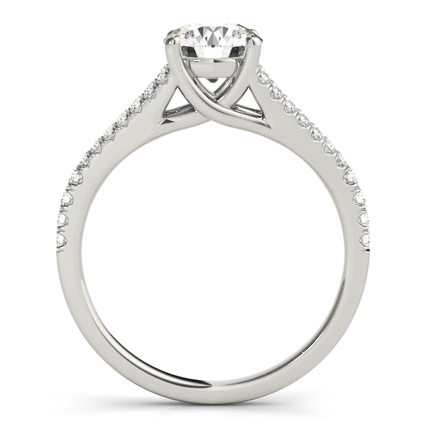 14k White Gold Engagement Ring with 1 – 1.PT Round & 24 – .004PT Round & 4 – .0075PT Round & 2 – .0125PT Round & 2 – .015PT Round Stones, equal to 1 1/5 carats total weight. This ring has an optional matching Wedding Band. Can be customized to fit any stone and in any material. Please contact Ronelli Corp for custom orders and modification information, as pricing may vary.