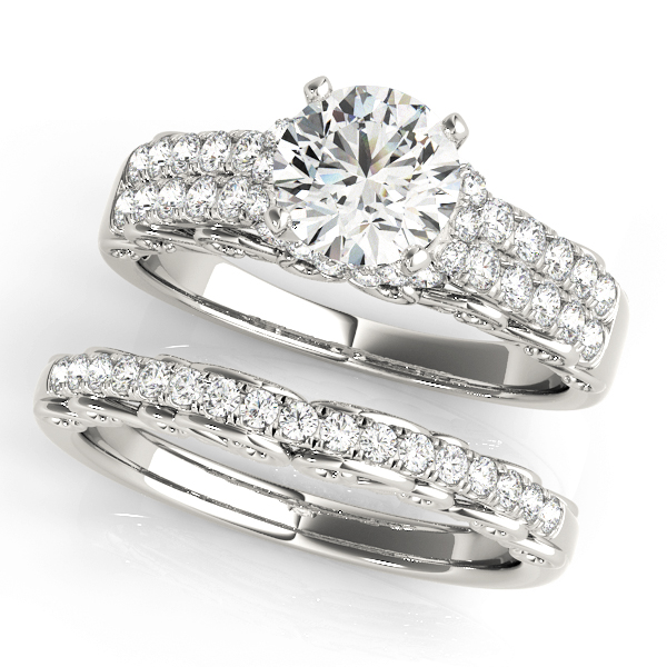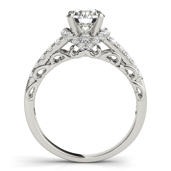 14k White Gold Engagement Ring with 18 – .0075PT Round & 2 – .01PT Round & 20 – .015PT Round Stones, equal to 1/2 carats total weight. This ring has an optional matching Wedding Band. Can be customized to fit any stone and in any material. Please contact Ronelli Corp for custom orders and modification information, as pricing may vary.