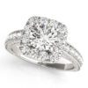 14k White Gold Engagement Ring with 2 – .0075PT Round & 60 – .004PT Round & 6 – .01PT Round & 4 – .015PT Round & 2 – .02PT Round Stones, equal to 3/8 carats total weight. This ring has an optional matching Wedding Band. Can be customized to fit any stone and in any material. Please contact Ronelli Corp for custom orders and modification information, as pricing may vary.