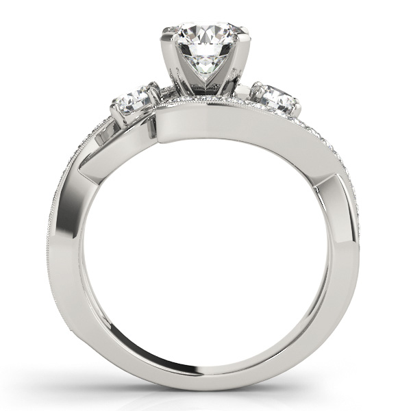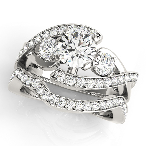 14k White Gold Engagement Ring with 44 – .006PT Round & 2 – .2PT Round Stones, equal to 5/8 carats total weight. This ring has an optional matching Wedding Band. Can be customized to fit any stone and in any material. Please contact Ronelli Corp for custom orders and modification information, as pricing may vary.