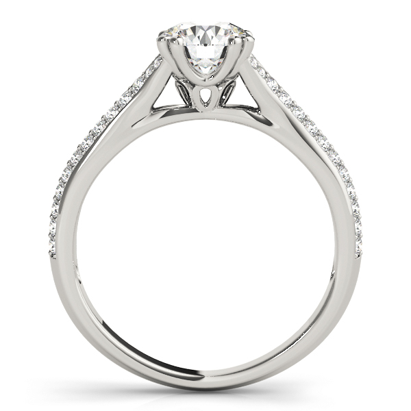 14k White Gold Engagement Ring with 1 – 1.PT Round & 4 – .004PT Round & 40 – .005PT Round Stones, equal to 1 1/5 carats total weight. This ring has an optional matching Wedding Band. Can be customized to fit any stone and in any material. Please contact Ronelli Corp for custom orders and modification information, as pricing may vary.