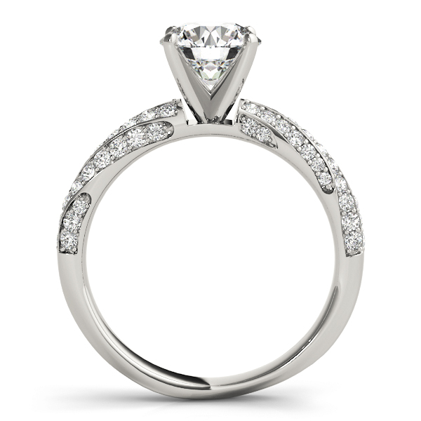 14k White Gold Engagement Ring with 6 – .003PT Round & 6 – .005PT Round & 2 – .006PT Round & 46 – .01PT Round Stones, equal to 1/2 carats total weight. This ring has an optional matching Wedding Band. Can be customized to fit any stone and in any material. Please contact Ronelli Corp for custom orders and modification information, as pricing may vary.
