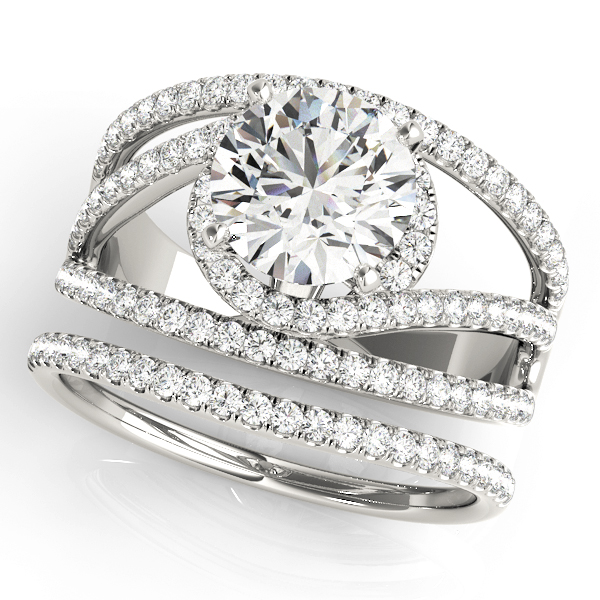 14k White Gold Engagement Ring with 86 – .0075PT Round Stones, equal to 5/8 carats total weight. This ring has an optional matching Wedding Band. Can be customized to fit any stone and in any material. Please contact Ronelli Corp for custom orders and modification information, as pricing may vary.