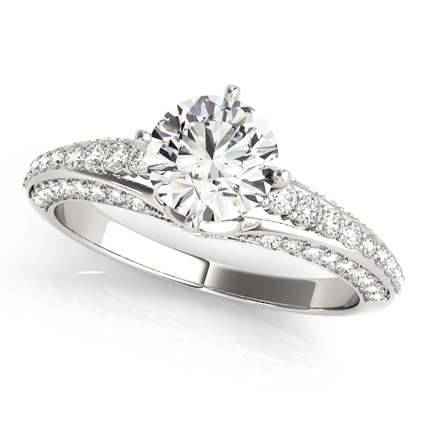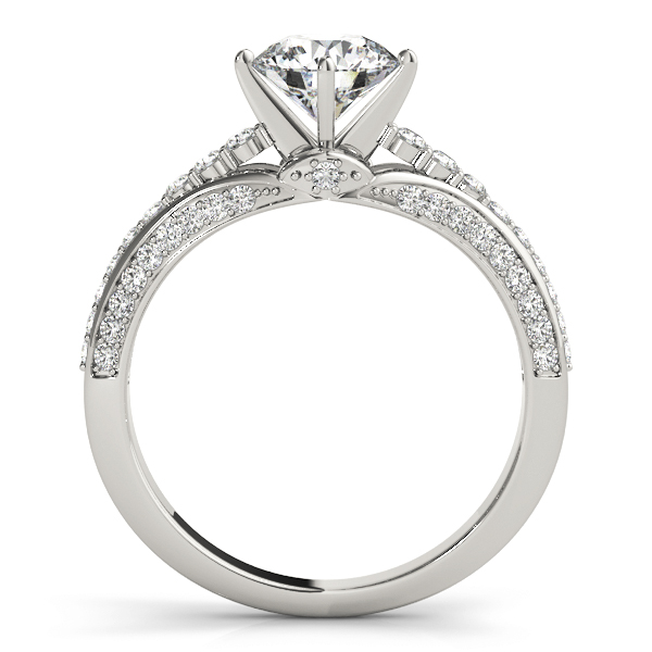 14k White Gold Engagement Ring with 36 – .005PT Round & 10 – .0075PT Round & 4 – .0125PT Round & 4 – .015PT Round & 2 – .0175PT Round Stones, equal to 3/8 carats total weight. This ring has an optional matching Wedding Band. Can be customized to fit any stone and in any material. Please contact Ronelli Corp for custom orders and modification information, as pricing may vary.