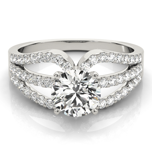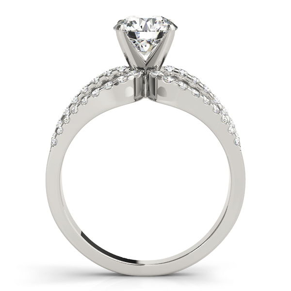 14k White Gold Engagement Ring with 52 – .01PT Round Stones, equal to 1/2 carats total weight. Can be customized to fit any stone and in any material. Please contact Ronelli Corp for custom orders and modification information, as pricing may vary.