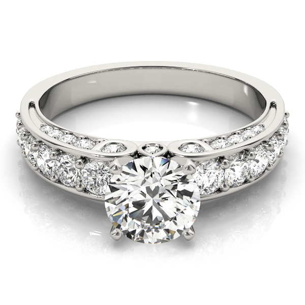 14k White Gold Engagement Ring with 8 – .005PT Round & 6 – .01PT Round & 8 – .02PT Round & 8 – .03PT Round Stones, equal to 1/2 carats total weight. Can be customized to fit any stone and in any material. Please contact Ronelli Corp for custom orders and modification information, as pricing may vary.