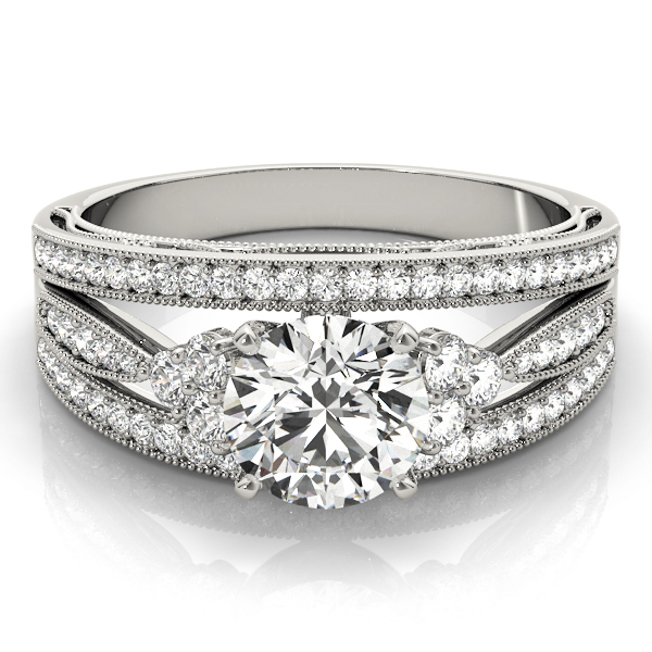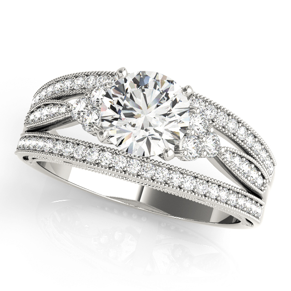 14k White Gold Engagement Ring with 4 – .003PT Round & 50 – .005PT Round & 2 – .006PT Round & 6 – .025PT Round Stones, equal to 3/8 carats total weight. Can be customized to fit any stone and in any material. Please contact Ronelli Corp for custom orders and modification information, as pricing may vary.