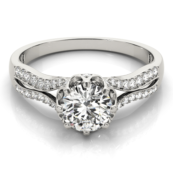 14k White Gold Engagement Ring with 1 – .75PT Round & 16 – .004PT Round & 24 – .005PT Round Stones, equal to 7/8 carats total weight. Can be customized to fit any stone and in any material. Please contact Ronelli Corp for custom orders and modification information, as pricing may vary.