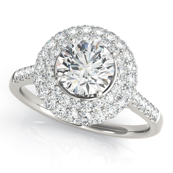 14k White Gold Engagement Ring with 10 – .015PT Round & 20 – .0125PT Round & 18 – .01PT Round Stones, equal to 5/8 carats total weight. This ring has an optional matching Wedding Band. Can be customized to fit any stone and in any material. Please contact Ronelli Corp for custom orders and modification information, as pricing may vary.