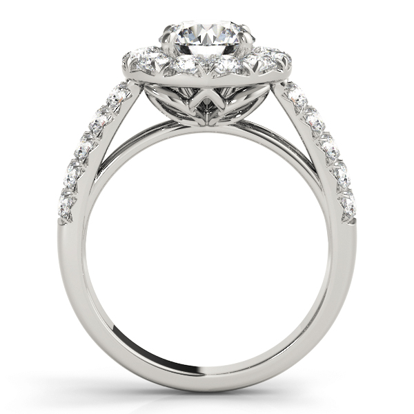 14k White Gold Engagement Ring with 20 – .025PT Round & 11 – .035PT Round Stones, equal to 7/8 carats total weight. This ring has an optional matching Wedding Band. Can be customized to fit any stone and in any material. Please contact Ronelli Corp for custom orders and modification information, as pricing may vary.