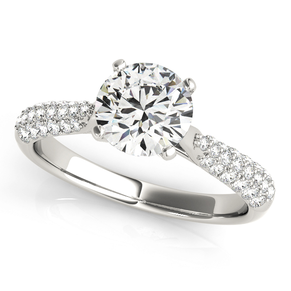 14k White Gold New Styles,Engagement Ring with 8 – .004PT Round & 16 – .005PT Round & 16 – .0075PT Round Stones, equal to 1/4 carats total weight. This ring has an optional matching Wedding Band. Can be customized to fit any stone and in any material. Please contact Ronelli Corp for custom orders and modification information, as pricing may vary.