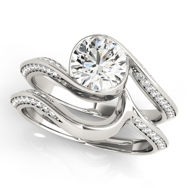 14k White Gold Engagement Ring with 1 – 1.PT Round & 40 – .006PT Round Stones, equal to 1 1/4 carats total weight. This ring has an optional matching Wedding Band. Can be customized to fit any stone and in any material. Please contact Ronelli Corp for custom orders and modification information, as pricing may vary.