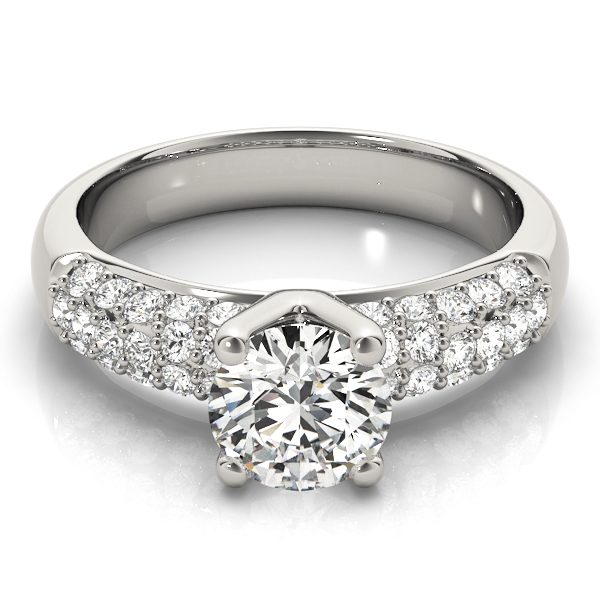 14k White Gold Engagement Ring with 1 – 1.PT Round & 36 – .0125PT Round Stones, equal to 1 1/2 carats total weight. Can be customized to fit any stone and in any material. Please contact Ronelli Corp for custom orders and modification information, as pricing may vary.