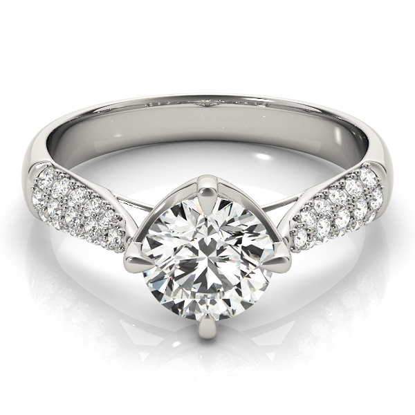 14k White Gold Engagement Ring with 1 – .75PT Round & 30 – .005PT Round Stones, equal to 7/8 carats total weight. Can be customized to fit any stone and in any material. Please contact Ronelli Corp for custom orders and modification information, as pricing may vary.