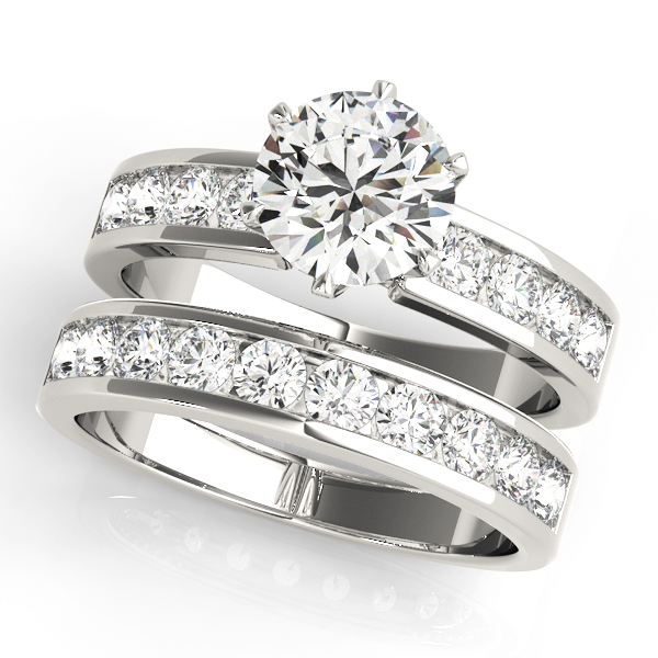 14k White Gold Engagement Ring with 1 – 1.PT Round & 8 – .07PT Round Stones, equal to 1 1/2 carats total weight. This ring has an optional matching Wedding Band. Can be customized to fit any stone and in any material. Please contact Ronelli Corp for custom orders and modification information, as pricing may vary.