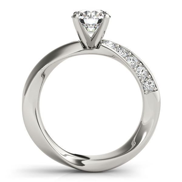 14k White Gold Engagement Ring with 10 – .035PT Round Stones, equal to 1/3 carats total weight. This ring has an optional matching Wedding Band. Can be customized to fit any stone and in any material. Please contact Ronelli Corp for custom orders and modification information, as pricing may vary.