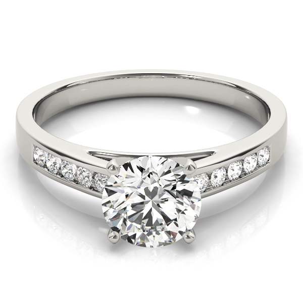 14k White Gold Engagement Ring with 10 – .05PT Round Stones, equal to 1/2 carats total weight. Can be customized to fit any stone and in any material. Please contact Ronelli Corp for custom orders and modification information, as pricing may vary.