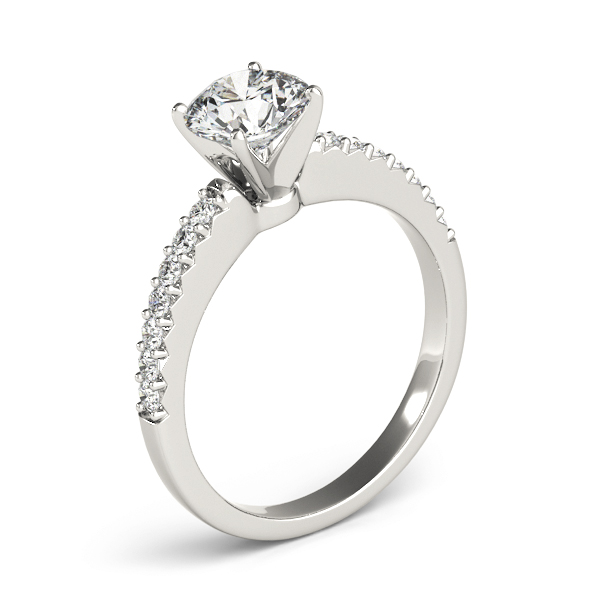 14k White Gold Engagement Ring with 14 – .01PT Round Stones, equal to 1/8 carats total weight. This ring has an optional matching Wedding Band. Can be customized to fit any stone and in any material. Please contact Ronelli Corp for custom orders and modification information, as pricing may vary.