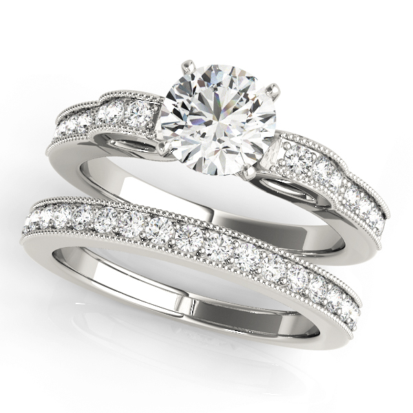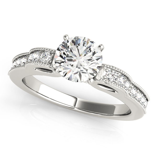 14k White Gold Engagement Ring with 4 – .02PT Round & 8 – .01PT Round Stones, equal to 1/6 carats total weight. This ring has an optional matching Wedding Band. Can be customized to fit any stone and in any material. Please contact Ronelli Corp for custom orders and modification information, as pricing may vary.