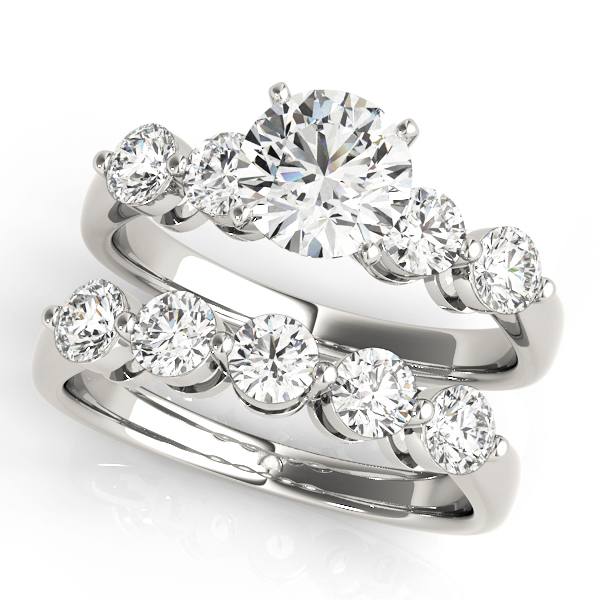 14k White Gold Engagement Ring with 4 – .1PT Round Stones, equal to 3/8 carats total weight. This ring has an optional matching Wedding Band. Can be customized to fit any stone and in any material. Please contact Ronelli Corp for custom orders and modification information, as pricing may vary.