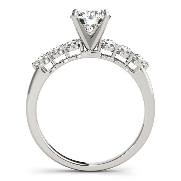 14k White Gold Engagement Ring with 6 – .1PT Round Stones, equal to 5/8 carats total weight. This ring has an optional matching Wedding Band. Can be customized to fit any stone and in any material. Please contact Ronelli Corp for custom orders and modification information, as pricing may vary.