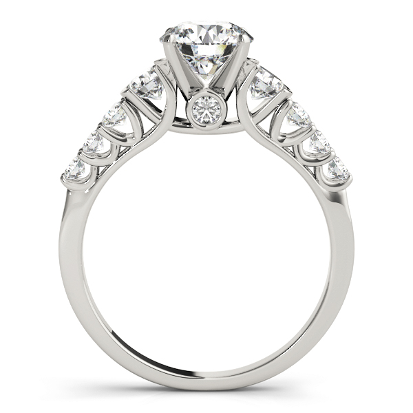14k White Gold Engagement Ring with 2 – .17PT Round & 4 – .04PT Round & 4 – .06PT Round Stones, equal to 3/4 carats total weight. This ring has an optional matching Wedding Band. Can be customized to fit any stone and in any material. Please contact Ronelli Corp for custom orders and modification information, as pricing may vary.