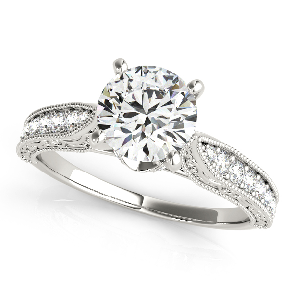 14k White Gold Engagement Ring with 2 – .015PT Round & 4 – .0125PT Round & 2 – .01PT Round & 8 – .0075PT Round & 4 – .006PT Round Stones, equal to 1/5 carats total weight. This ring has an optional matching Wedding Band. Can be customized to fit any stone and in any material. Please contact Ronelli Corp for custom orders and modification information, as pricing may vary.