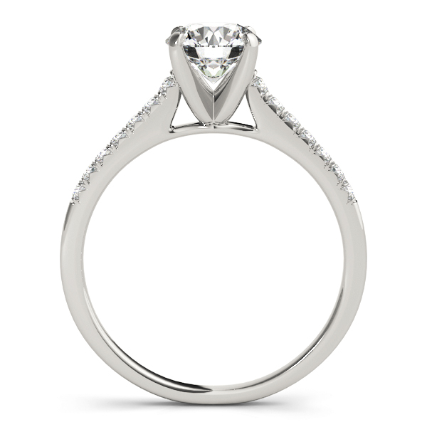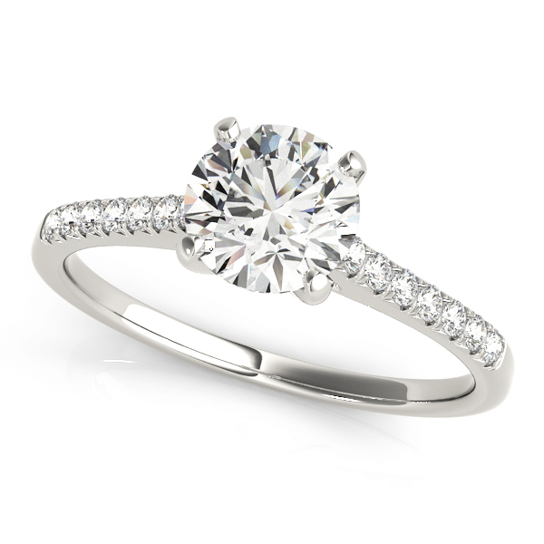 14k White Gold Engagement Ring with 14 – .0075PT Round Stones, equal to 1/10 carats total weight. This ring has an optional matching Wedding Band. Can be customized to fit any stone and in any material. Please contact Ronelli Corp for custom orders and modification information, as pricing may vary.