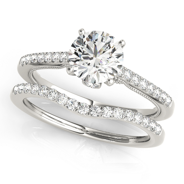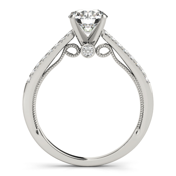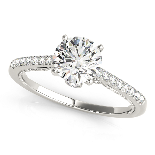 14k White Gold Engagement Ring with 12 – .0275PT Round & 2 – .015PT Round Stones, equal to 1/3 carats total weight. This ring has an optional matching Wedding Band. Can be customized to fit any stone and in any material. Please contact Ronelli Corp for custom orders and modification information, as pricing may vary.
