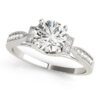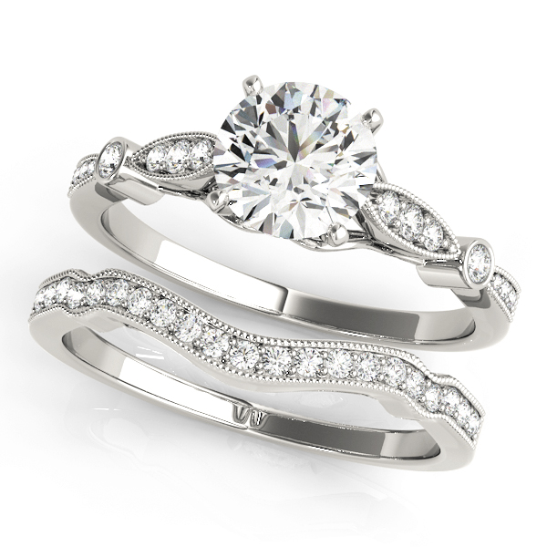 14k White Gold Engagement Ring with 8 – .01PT Round & 6 – .0075PT Round Stones, equal to 1/8 carats total weight. This ring has an optional matching Wedding Band. Can be customized to fit any stone and in any material. Please contact Ronelli Corp for custom orders and modification information, as pricing may vary.