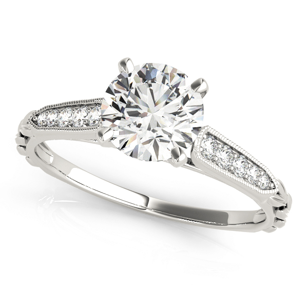 14k White Gold Engagement Ring with 2 – .006PT Round & 2 – .0125PT Round & 4 – .0175PT Round & 2 – .025PT Round Stones, equal to 1/6 carats total weight. This ring has an optional matching Wedding Band. Can be customized to fit any stone and in any material. Please contact Ronelli Corp for custom orders and modification information, as pricing may vary.