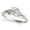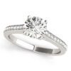 14k White Gold Engagement Ring with 1 – .6PT Round & 32 – .005PT Round Stones, equal to 3/4 carats total weight. This ring has an optional matching Wedding Band. Can be customized to fit any stone and in any material. Please contact Ronelli Corp for custom orders and modification information, as pricing may vary.