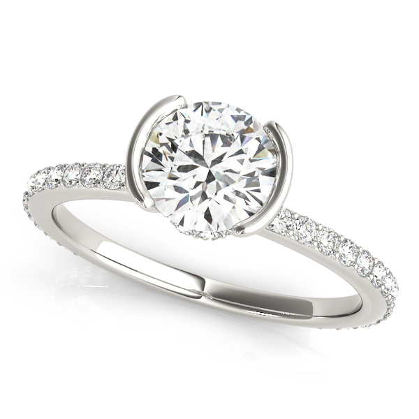 14k White Gold Engagement Ring with 1 – 1.PT Round & 11 – .005PT Round & 32 – .0075PT Round Stones, equal to 1 1/3 carats total weight. This ring has an optional matching Wedding Band. Can be customized to fit any stone and in any material. Please contact Ronelli Corp for custom orders and modification information, as pricing may vary.