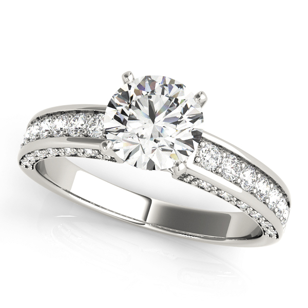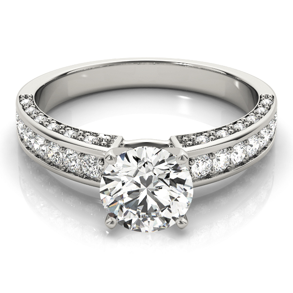 14k White Gold Engagement Ring with 14 – .02PT Round & 24 – .005PT Round Stones, equal to 3/8 carats total weight. Can be customized to fit any stone and in any material. Please contact Ronelli Corp for custom orders and modification information, as pricing may vary.