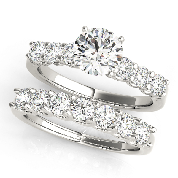 14k White Gold Engagement Ring with 6 – .1PT Round Stones, equal to 5/8 carats total weight. Can be customized to fit any stone and in any material. Please contact Ronelli Corp for custom orders and modification information, as pricing may vary.