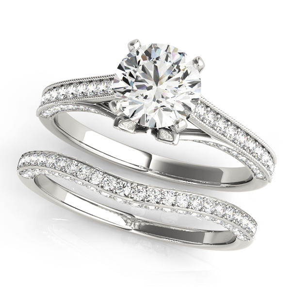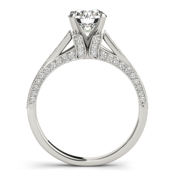 14k White Gold Engagement Ring with 4 – .0035PT Round & 4 – .004PT Round & 46 – .005PT Round & 16 – .006PT Round Stones, equal to 1/3 carats total weight. Can be customized to fit any stone and in any material. Please contact Ronelli Corp for custom orders and modification information, as pricing may vary.