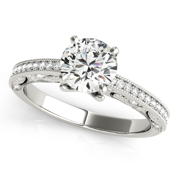 14k White Gold Engagement Ring with 6 – .004PT Round & 18 – .005PT Round & 4 – .006PT Round & 8 – .008PT Round Stones, equal to 1/5 carats total weight. This ring has an optional matching Wedding Band. Can be customized to fit any stone and in any material. Please contact Ronelli Corp for custom orders and modification information, as pricing may vary.