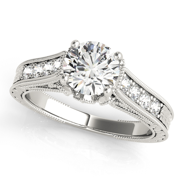 14k White Gold Engagement Ring with 1 – 1.25PT Round & 8 – .03PT Round & 6 – .015PT Round Stones, equal to 1 5/8 carats total weight. Can be customized to fit any stone and in any material. Please contact Ronelli Corp for custom orders and modification information, as pricing may vary.