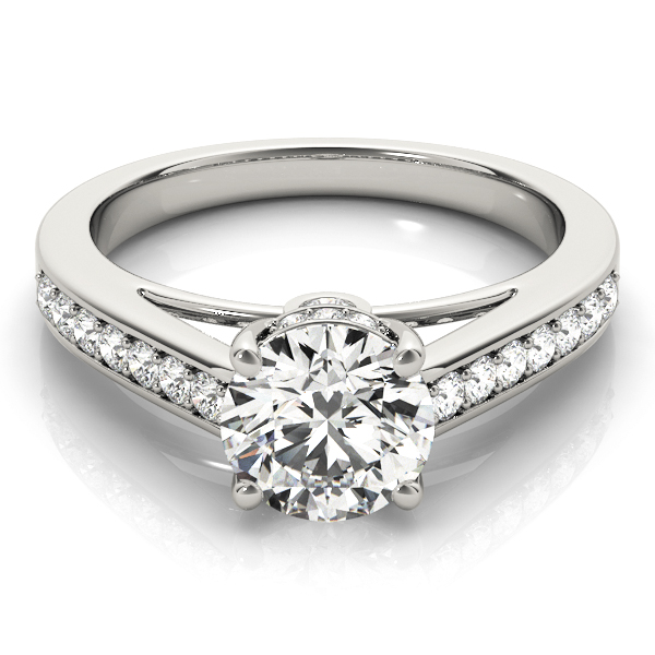 14k White Gold Engagement Ring with 1 – 1.3PT Round & 2 – .03PT Round & 14 – .0125PT Round & 6 – .005PT Round Stones, equal to 1/4 carats total weight. Can be customized to fit any stone and in any material. Please contact Ronelli Corp for custom orders and modification information, as pricing may vary.