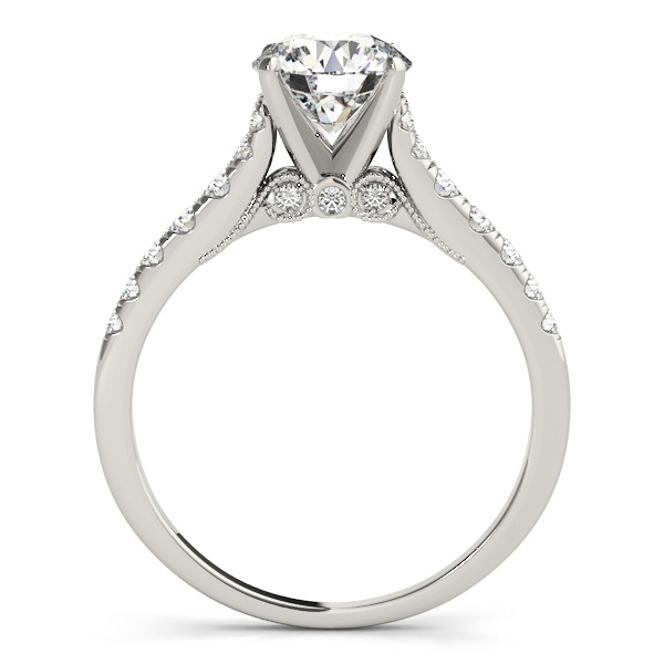 14k White Gold Engagement Ring with 4 – .003PT Round & 2 – .005PT Round & 10 – .0075PT Round & 2 – .01PT Round & 2 – .0125PT Round & 2 – .0275PT Round & 2 – .03PT Round Stones, equal to 1/4 carats total weight. Can be customized to fit any stone and in any material. Please contact Ronelli Corp for custom orders and modification information, as pricing may vary.