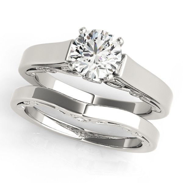 14k White Gold Engagement Ring with 2 – .015PT Round Stones, equal to 1/20 carats total weight. This ring has an optional matching Wedding Band. Can be customized to fit any stone and in any material. Please contact Ronelli Corp for custom orders and modification information, as pricing may vary.