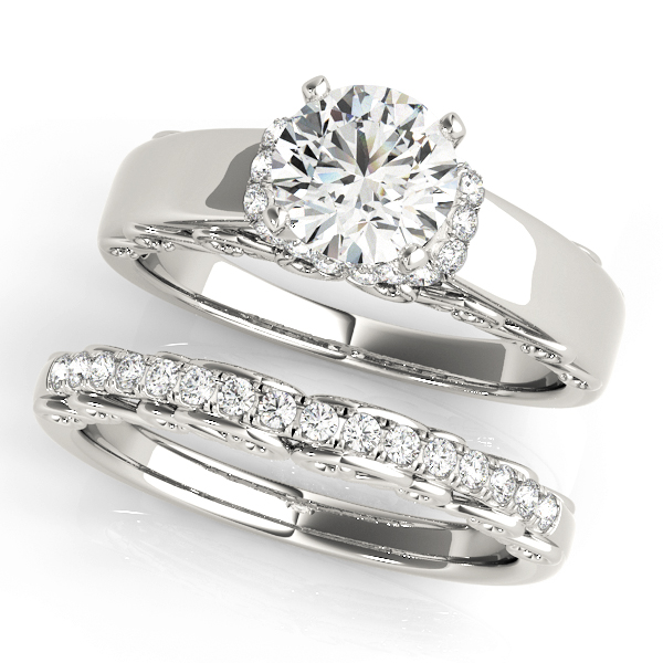14k White Gold Engagement Ring with 20 – .0075PT Round Stones, equal to 1/6 carats total weight. This ring has an optional matching Wedding Band. Can be customized to fit any stone and in any material. Please contact Ronelli Corp for custom orders and modification information, as pricing may vary.