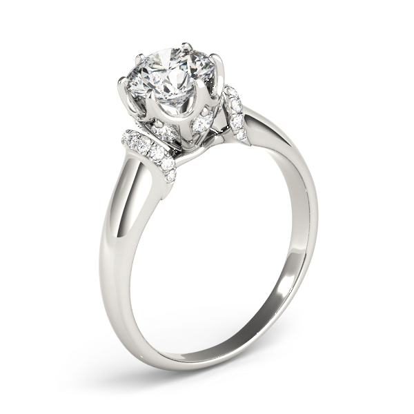 14k White Gold Engagement Ring with 1 – 1.PT Round & 18 – .004PT Round & 6 – .0125PT Round Stones, equal to 1 1/6 carats total weight. This ring has an optional matching Wedding Band. Can be customized to fit any stone and in any material. Please contact Ronelli Corp for custom orders and modification information, as pricing may vary.