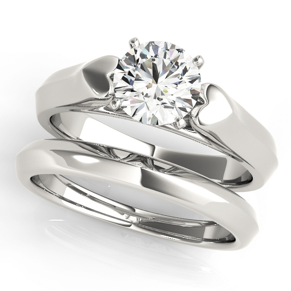 14k White Gold Engagement Ring with no stones. This ring has an optional matching Wedding Band. Can be customized to fit any stone and in any material. Please contact Ronelli Corp for custom orders and modification information, as pricing may vary.