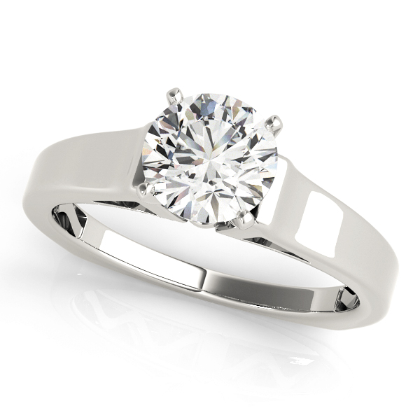 14k White Gold Engagement Ring with no stones. This ring has an optional matching Wedding Band. Can be customized to fit any stone and in any material. Please contact Ronelli Corp for custom orders and modification information, as pricing may vary.