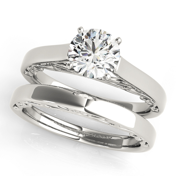 14k White Gold Engagement Ring with no stones. This ring has an optional matching Wedding Band. Can be customized to fit any stone and in any material. Please contact Ronelli Corp for custom orders and modification information, as pricing may vary.