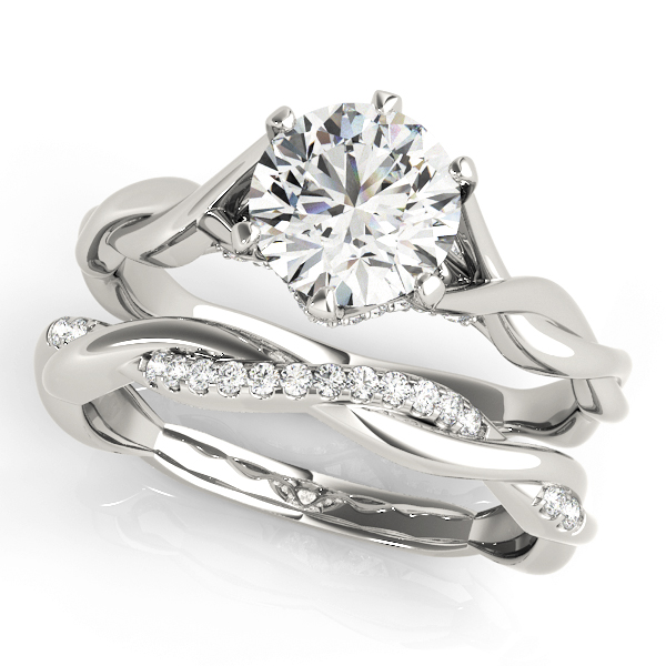 14k White Gold Engagement Ring with 1 – 1.PT Round & 22 – .005PT Round Stones, equal to 1 carats total weight. This ring has an optional matching Wedding Band. Can be customized to fit any stone and in any material. Please contact Ronelli Corp for custom orders and modification information, as pricing may vary.