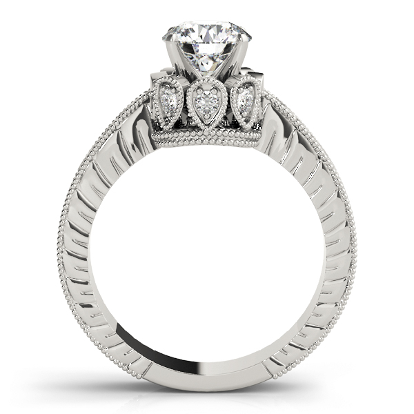 14k White Gold Engagement Ring with 6 – .01PT Round Stones, equal to 1/20 carats total weight. Can be customized to fit any stone and in any material. Please contact Ronelli Corp for custom orders and modification information, as pricing may vary.