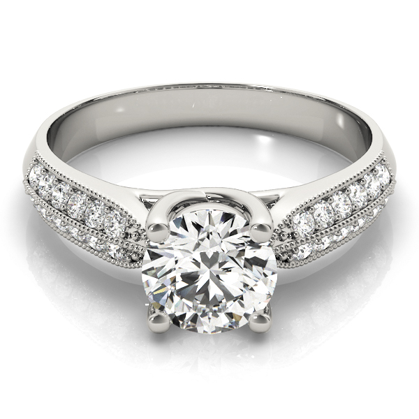 14k White Gold Engagement Ring with 1 – 1.5PT Round & 20 – .0125PT Round Stones, equal to 1 3/4 carats total weight. Can be customized to fit any stone and in any material. Please contact Ronelli Corp for custom orders and modification information, as pricing may vary.